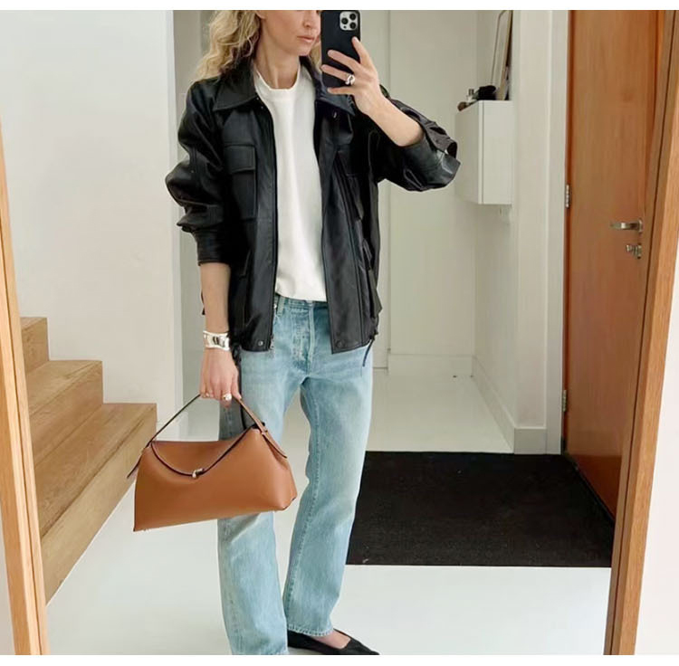 Lychee print soft leather bag