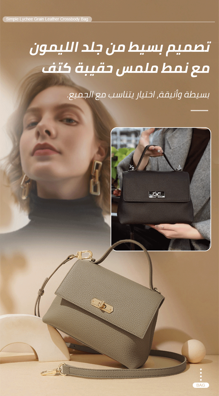 حقيبة كروس جلد اللتشي بتصميم بسيط
